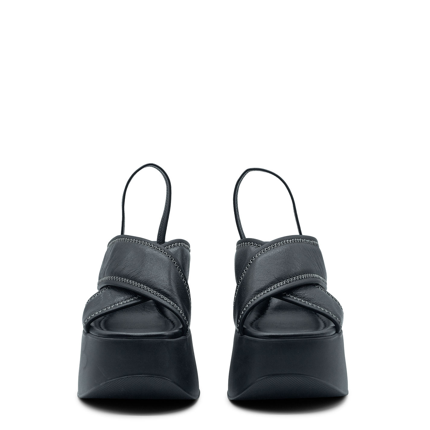 elastico ricoperto in pelle per una maggiore stabilità . Zeppa in materiale gommoso super leggero, confortevole e in tono con battistrada antiscivolo. Sottopiede in pelle imbottito e arricchito da cucitura. Made in Italy.